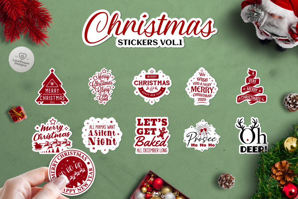 Christmas Stickers Bundle | Print and Cut Stickers SVG | PNG Vol1